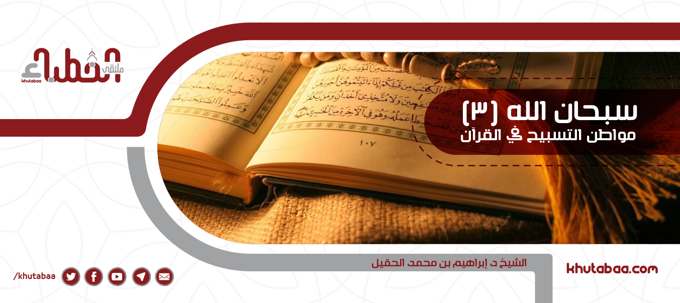 وَفِي الْقُرْآنِ الْكَرِيمِ تَسْبِيحٌ لِلَّهِ -تَعَالَى- كَثِيرٌ؛ لِيَرْتَاضَ لِسَانُ قَارِئِ الْقُرْآنِ عَلَى تَسْبِيحِهِ -تَعَالَى-، مُوَاطِئًا قَلْبُهُ لِسَانَهُ فِي تَعْظِيمِهِ وَإِجْلَالِهِ. وَتَسْبِيحُ اللَّهِ -تَعَالَى- جَاءَ فِي الْقُرْآنِ فِي سِيَاقَاتٍ عَظِيمَةٍ، يَنْبَغِي لِقَارِئِ الْقُرْآنِ أَنْ يَفْطَنَ لَهَا وَيَتَأَمَّلَهَا؛ لِيُنَزِّهَ اللَّهَ -تَعَالَى- وَيُعَظِّمَهُ وَيُثْنِيَ عَلَيْهِ بِمَا هُوَ أَهْلُهُ.
